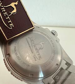 Oggetto in condizioni pari nuovo Completo di tutto il corredo Cassa da 43mm corona esclusa Ghiera ceramica unidirezionale Vetto zaffiro Fondello e corona serrati a vite Impermeabile 300mt. Per info MAX-WATCH di Speca Massimo Via Emilio Po' 239 41126 Modena 3472206731