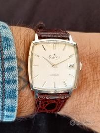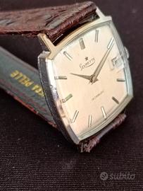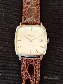 Propongo orologio stile TV screen elegante di una maison con una storia interessante. Un orologio classico, molto comodo al polso per gli amanti degli orologi di forma. Cassa cromata da 30 mm escluso corona. Corona originale. Quadrante grigio effetto lino con indici a bastone e lancette stile dauphine. Datario a rimessa lenta. Movimento a carica manuale Levrette. Vetro plexi con lente ciclopica. Cinturino aftermarket nuovo. L'orologio funziona correttamente e tiene bene il tempo anche se non si conosce la data dell'ultima revisione. Le foto sono parte integrante della descrizione, non si accettano resi. Segui il mio profilo ho sempre un assortimento di Longines Omega Tag Heuer Zenith Tank Diver e altri orologi vintage e contemporanei