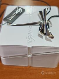 Libellula acciaio con punto luce. Cordino in pelle o similpelle