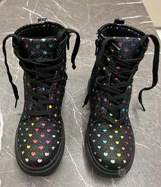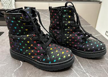 Stivaletti per bambina con cuoricini multicolor, usati meno di un mese, alcuni sono sbiaditi. Taglia 33