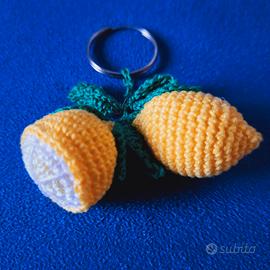 limoni e foglie portachiavi , lavorati all'uncinetto, misure nelle foto