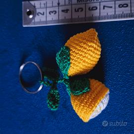 Limoni e foglie portachiavi lavorati all'uncinetto
