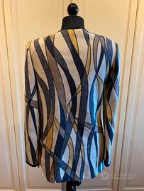 Elegante cardigan 80 % lana con disegno geometrico taglia 46 Linea dritta 4 bottoni Misure: spalle cm 46, ascelle cm 49, lunghezza cm 72