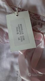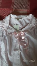 Liseuse vintage con inserti di pizzo in cotone rosa pallido. Manica tre quarti a sbuffo. Valentino Lingerie. L'oggetto ha ancora il cartellino, non è mai stato usato.