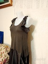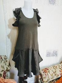 abito elegante in condizioni eccellenti , è stato indossato mezza volta per un occasione e poi rimesso in confezione plastificata , spalline ondulate e gonna in raso puro , taglia S .