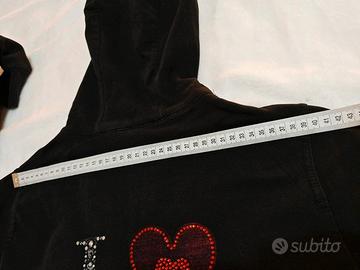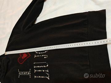Liu. Jo felpa nera garzata dietro scritta con brillantini / strass. Tg S, misure in cm nelle foto, usata malto è un po' scolorita e ha delle macchioline vedi foto, € 8.90
