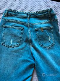Liu-jo jeans indossati solo un paio di volte, con cintura e tasche decorate con borchie rotonde e brillantini rotondi.