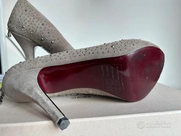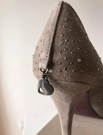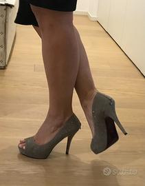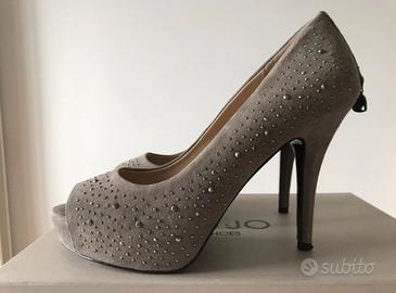 Bellissime scarpe LiuJo di pelle scamosciata, color fango, open toe con tacco 11cm e plateau