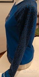felpa firmata Liu Jo Sport. Un mix perfetto tra stile sportivo e dettagli glamour. Brand: Liu Jo Sport (Originale) Taglia: S Colore: Blu elettrico vibrante con dettagli leopardati tono su tono. Condizioni: Usato in buone condizioni. Dettagli Unici Design: Grafica frontale "I'M" con logo in strass brillanti. Stile: Maniche raglan e tasca a marsupio con stampa animalier. Il tocco di classe: Zip dorata integrale sul retro che corre lungo tutta la schiena. Comfort: Tessuto leggermente elasticizzato (95% Cotone, 5% Elastane). Misure (Capo steso) Lunghezza: 60 cm Larghezza (ascella-ascella):
