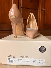 LiuJo Décolleté Décollete in vernice nude LiuJo, numero 35. L'articolo è nuovo, mai stato usato. È presente l'imballaggio originale come mostrato nelle foto allegate. Presenta un dettaglio scollo a cuore sul davanti, un dettaglio metallizzato sul fondo del tacco che offre maggiore comfort e accessorio logato sul tacco Altezza tacco: 9,5 cm