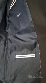 Giacca uomo blu, il grande classico per l'abbigliamento elegante.. Composizione tessuto misto acrilico, elastan, cotone. Freschissima e con taglio sartoriale, finiture particolari con cuciture interne bianche. 2 bottoni, taglia 50 drop 7 slim fit.