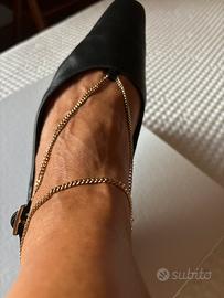 Usata ma in ottimo stato ballerina in vera pelle color nero suola in vero cuoio con laccio alla caviglia n 37
