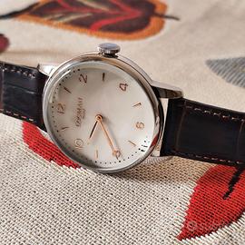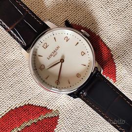 Vendo elegante Locman 1960, modello Ref. 251-0251V10-RGAVRGPN, orologio italiano dalla linea classica e raffinata ispirata agli anni Sessanta. Caratteristiche principali: •cassa in acciaio con finitura PVD Oro Rosa da 41 mm. •Quadrante avorio (crema) con indici applicati e logo Locman Italy. •Vetro zaffiro antigraffio. •Movimento al quarzo giapponese Miyota, preciso e affidabile. •Cinturino in pelle marrone scuro. •Resistenza all’acqua fino a 5 ATM (50 metri). Condizione: eccellente / come nuovo. Indossato pochissime volte, perfettamente funzionante e senza segni di usura visibili su cassa, vetro o cinturino. Stile vintage-elegante, perfetto per look formali, business o occasioni speciali. Design unisex ma particolarmente indicato per uomo. Scatola originale e garanzia disponibili. Prezzo: € 160,00.