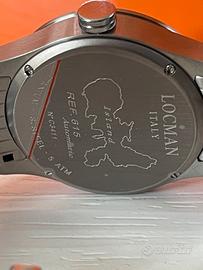 LOCMAN Automatico Island Ref. 615 0615V01-00BKWBR0 - * Cassa: in acciaio e titanio dimensione 40 mm * Cinturino: Acciaio misura anse 21 * Colore: Quadrante Nero * Vetro: antigraffio con trattamento in zaffiro * Funzioni: Solo tempo meccanico Automatico * Resistenza all'Acqua: 5 Atmosfere Se volete guardare anche gli altri miei annunci qui sotto grazie