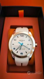 Movimento al quarzo, cassa 40mm in acciaio, vetro in zaffiro antiriflesso, impermeabile 5atm. Nuovo con garanzia e un confezione originale.