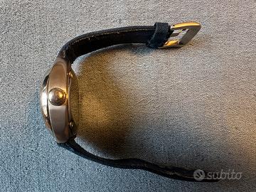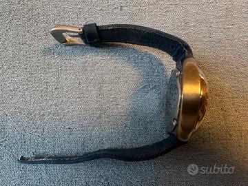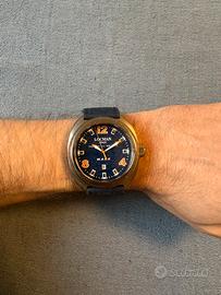 Vendo Locman Mare con cassa in titanio, Ref. 132. Un orologio leggerissimo, robusto e dal design nautico inconfondibile ispirato all'Isola d'Elba. • Cassa: In Titanio satinato, ultra-leggera e anallergica. • Quadrante: Blu con pattern marino, indici e lancette arancioni. Datario a ore 6. • Cinturino: Originale Locman in tessuto tecnico blu con fibbia logata. • Autenticità: Numero seriale (N. 5101) e logo chiaramente visibili sul fondello (vedi foto). • Condizioni: Usato ma ben conservato; presenta lievi segni di utilizzo sulla lunetta e sul vetro visibili controluce. • Documentazione: La prova di acquisto originale non è disponibile. L'autenticità del pezzo è certificata dalle incisioni della referenza e del numero di serie sul retro della cassa.
