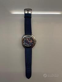 L’orologio Locman Mare Marina Militare nasce dalla collaborazione consolidata di Locman con la Marina Italiana. Grazie allo sviluppo di materiali high-tech dalle funzionalità inimitabili, come il titanio con cui è realizzata la cassa, l’orologio risulta leggero e ultraresistente. Quadrante blu con tre contatori, finestrella della data a ore 4, logo Marina Militare a ore 3. Cinturino in Lorica blu logato Marina Militare