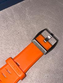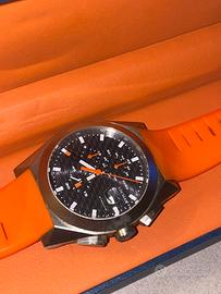 Orologio automatico da uomo di Locman della collezione montecristo. Orologio con cassa in acciaio e titanio della dimensione di 44 × 13 mm e misto di numeri arabi ed indici stampati. Cinturino in silicone rosso della larghezza di 26mm. Orologio con resistenza all'acqua di 10 atm e datario. La referenza è 051 100bkfrdOgor Ottime condizioni compreso di scatola e cuscinetto