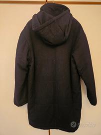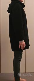 Loden da donna in colore nero con cappuccio, zip e bottoni, in buonissime condizioni, solamente una piccola smagliatura nella fodera (vedi ultima foto)