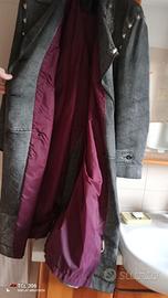 LONDON RAIN impermeabile cappotto giaccone giacca lunga vintage anni 60-70 il tessuto è stoffa ricoperta da simil-pelle vinilca. Smagliature, tracce di sporco, sbiaditure, consumii, screpolature, bottoni mancanti e alcuni sostituiti, segni del tempo ed impreziosita con borchie e catene aggiunte in seguito. Taglia 42 misure prese col metro-a-fettuccia: lunghezza presa dietro: 111 centimetri larghezza alle spalle: 47 centimetri larghezza al busto: 53 centimetri lunghezza manica: 58 centimetri TEL.3716299837