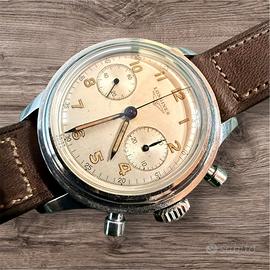 La calda patina conferisce all’orologio un vero carattere vintage. I numeri delle ore e le lancette hanno ancora l’originale radium lume, che può essere verificato con il contatore La cassa in acciaio inossidabile in due pezzi con fondello a vite impermeabile garantisce una lunga durata. La lunetta a gradini, i pulsanti rotondi e la corona a scatto mantengono il design elegante e funzionale dell'orologio. L'orologio conserva il quadrante originale, in condizioni eccellenti, con numeri luminosi al radio e lancette a siringa riempite di radio. Questo segnatempo è in ottime condizioni e rappresenta un pezzo da collezione molto ambito che incarna il ricco patrimonio orologiero di Longines.