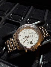 Longines Admiral 5 Stars Chrono 40mm Full set L3.603.4 Vintage automatic White Dial • Quadrante: bianco, in perfette condizioni. Pari nuovo • Vetro: in perfette condizioni, come nuovo. • Cassa: 40 mm in ottime condizioni, con leggeri segni di usura. • Fondello: in ottime condizioni e con leggeri segni di usura. • Bracciale: in ottime condizioni, molto rigido e molto bello. Veste fino a un polso di 19mm • Corona: originale, logata e coeva Longines. • Movimento: automatico 7750, perfettamente funzionante e appena revisionato. Orologio stupendo, elegante e versatile dotato di tutto il suo corredo. Condizioni generali: 9/10 Scambio con Omega Seamaster, Speedmaster, Rolex, Tudor, Zenith e Jaeger. Grazie mille Matteo