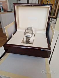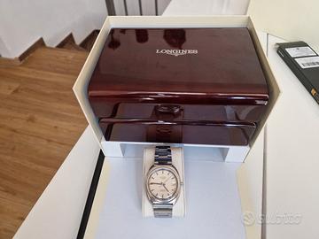Occasione per collezionisti e reseller. Vendo Longines Admiral HF (High Frequency) anni '70 in condizioni originali. Pezzo forte: Monta il rarissimo calibro di manifattura 431 a 36.000 alternanze orarie (la sfera secondi scorre fluida, senza scatti percepibili). Originalità: Quadrante, sfere e cassa 100% originali. Mai lucidato. Piccola macchietta ore 4. Bracciale: Originale Longines in acciaio (raro trovarlo completo). Corredo: Incluso di scatola Longines come da foto. Stato: Perfettamente funzionante, tiene il tempo con precisione. Prezzo per realizzo immediato. Non scambio