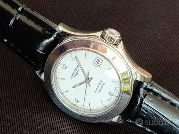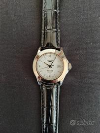Propongo modello di punta della Longines negli anni 80 per donna. Ottimo stato di conservazione, quadrante molto luminoso, movimento al quarzo Longines di grande affidabilità. Cassa in acciaio da 29 mm escluso corona, 31 mm compresa corona. Quadrante bianco con indici argento a bastone e numeri arabi, logo Admiral 5 star. Datario a ore 3 con quickset. Vetro zaffiro. Movimento al quarzo originale Longines. Cinturino nuovo generico con fibbia originale. SI VENDE IL SOLO OROLOGIO, NO SCATOLA NO DOCUMENTI. L'orologio funziona correttamente e tiene bene il tempo anche se non si conosce la data dell'ultima revisione. Le foto sono parte integrante della descrizione, non si accettano resi. Segui il mio profilo ho sempre un assortimento di Longines, Omega, Tag Heuer, Tudor Zenith e altri orologi vintage tank e diver