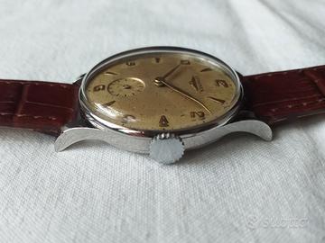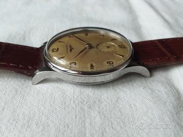 Orologio vintage originale Longines del 1940, carica manuale, calibro 12.68Z perfettamente funzionante, revisionato a dicembre 2025, cassa in acciaio, diametro 35 mm. esclusa la corona, bellissimo quadrante originale, vetro plexi nuovo, cinturino in pelle e fibbia generici, privato vende a 400 euro non trattabili. Non accetto permute. È preferibile la consegna a mano su Roma in zona Monteverde altrimenti posso spedire con Poste italiane raccomandata 1 (spese di spedizione a carico dell'acquirente). Non utilizzo tuttosubito e non spedisco in contrassegno. Astenersi perditempo, grazie.