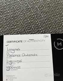 Vendo Orologio Longines Présence Automatic