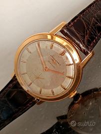 Splendido orologio LONGINES AUTOMATICO IN ORO 18KT ref. 6879 2 vintage anni 50-60, diametro 35mm. esclusa corona, tutto originale e coevo, vendo a 1400 euro non trattabili. Quadrante originale, Cassa pesante, originale Longines, corona Longines. Movimento Longines, il famoso Cal. 22 A non scambio con Zenith, Eberhard Girard Perregaux Omega Tag Heuer Breitling