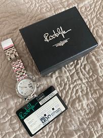 Rodolphe AUTOMATICO. Stupendo bracciale in acciaio, cronografo, giorno settimana e data ore tre, numeri romani, totalizzatori ore 6-9-12,