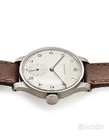 Longines calatrava ; Peso: 35.75; Misura: 15/20 cm; Materiale: Acciaio; Anno: 1940 (circa); Corredo: Garanzia e scatola del rivenditore; Referenza: 2106645; Carica: Manuale; Calibro: 6015131; Rubini: 17; Colore quadrante: Argento; Corona: Acciaio; Diametro cassa: 33mm; Ghiera: Acciaio Materiale cassa: Acciaio; Materiale cinturino: Pelle; Vetro: Plexiglass Cod; 2821-a