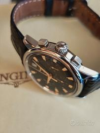 Longines Conquest Heritage, cronografo automatico in ottime condizioni, unico proprietario, revisione e prova pressione ok. Cassa da 38,5 escluso corona, dial nero molto raro e ricercato, completo di scatola, contro scatola e garanzia originale. Accetto scambi e permute con Rolex, Zenith,Squale, Hamilton,Omega, Longines,Revue,Valjoux,etc,solo meccanici e anche vintage.