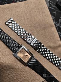 Vendo bellissimo Orologio Longines Dolcevita lady al quarzo, Orologio di forma dei primi anni 2000, in ottime condizioni, quadrante salmone, (molto raro), vendo con cinturino originale Wyler Vetta e bracciale originale Longines, (per polsi fino a 16cm), Solo Orologio (No Corredo), 22mm x 33mm x 6,5mm. Ottime condizioni, funziona perfettamente.