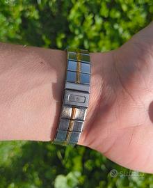 orologio molto raro con un designe particolare e molto elegante, bracciale e lunetta placcati in oro. l'orologio tiene perfettamente il tempo e la batteria è stata appena cambiata da un orologiaio.