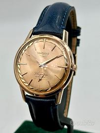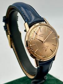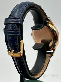 La Mole d’Oro propone un orologio Longines Flagship, anni ’50, diametro 35 mm, vetro plastica, movimento manuale, cassa oro rosa 18k, quadrante in oro rosa 18k.