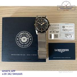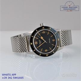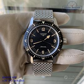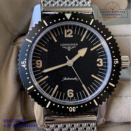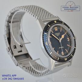 Longines Heritage Skin Diver acciaio, anno di produzione 2024, ghiera unidirezionale acciaio con trattamento PVD colore nero a scala graduata, vetro zaffiro antiriflesso, quadrante colore nero con indici arabi e sfere al LumiNova, movimento meccanico a carica automatica, bracciale acciaio maglia Milano con chiusura deployante originale Longines.