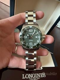 Vendo bellissimo orologio automatico longines hydroconquest 43mm verde con ghiera ceramica Full set con scatola garanzia Acquistato ad ottobre 2025 Orologio indossato quotidianamente che Presenta normali segni di utilizzo (airlines sulla parte centrale lucida del bracciale, sulla clasp, e sotto le anse dovute al cambio cinturino)
