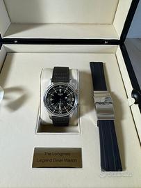Longines Legend Diver Ref. L3.674.4 full set anno 2017 in ottime condizioni. L’orologio è dotato di cinturino originale in gomma con deplo originale e cinturino militare con ardiglione originale. Garanzia sul corretto funzionamento.
