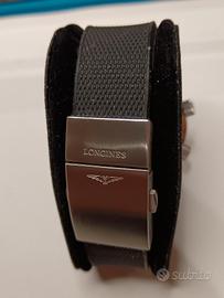 Orologio Longines modello Legend Diver, movimento meccanico a carica automatica L633 perfettamente funzionante, bracciale gomma con chiusura in acciaio, cassa in acciaio da 40 mm in perfette condizioni, vetro minerale di grande spessore per resistere a 30 atmosfere, con scatola, no garanzia. Oggetto assolutamente originale della mia collezione.