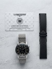 un classico dell'orologeria, un diver senza tempo adatto ad ogni occasione. Condizioni eccellenti, vetro intatto, piccole hairlines da normale utilizzo. diametro 42mm card Longines cinturino originale con relativa fibbia. L'orologio tiene il tempo perfettamente. Il bracciale in metallo in foto non è originale ma può essere incluso se desiderato. non è presente la scatola originale. allego anche un certificato di originalità rilasciato a suo tempo da Chrono24. spedizione disponibile.