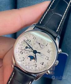 LONGINES Longines Master Collection Movimento meccanico automatico, funzione fase lunare a otto lancette, quadrante bianco svizzero da uomo da 42 mm, cassa in acciaio inossidabile, cinturino in vera pelle L2.773.4.78.3