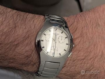 Condizioni: L'orologio è perfettamente funzionante. Esteticamente in buone condizioni, presenta piccoli segni superficiali su bracciale e cassa (visibili in foto), dovuti al normale utilizzo, che non ne pregiudicano l'estetica generale.