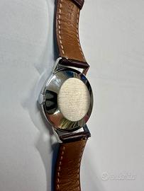 Vendo orologio da polso in acciaio Gents Longines risalente al 1963. Un meccanismo a carica manuale calibro c281. Un quadrante argentato con "mirino" e apertura della data. Marcatori a bastone argentati e lancette con secondi di spazzamento. Una custodia sottile con una vera corona a carica Longines.
