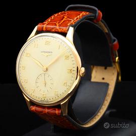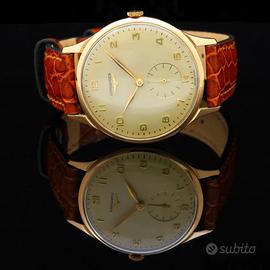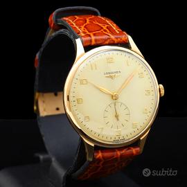 anni 50 in oro rosa18 kt cassa di 37 mm escluso corona quadrante beige vetro plexy cinturino Morellato nuovo marrone in pelle fibbia Morellato laminata oro movimento meccanico a carica manuale calibro 12.68 perfettamente funzionante revisionato originale Longines (non trattiamo falsi) in ottime condizioni !! rilasciamo fattura di vendita nella quale certifichiamo l'orologio spediamo gratis in tutto il mondo