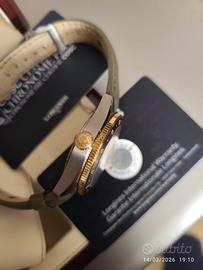 come nuovo, usato im 2/3 occasioni acciaio e oro 18kt corredo completo , comprato da astrua torio referenza:l3.802.5.53.2 39mm con dopoio cinturino pagato a listino 5,000€ vendo per inutilizzo 3.900€