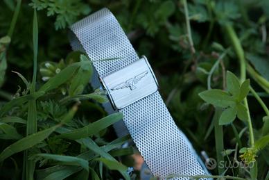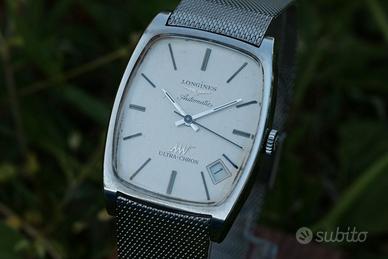 Rarissimo Longines Ultra-Chron, referenza 8473 del 1969. Un pezzo di storia dell'orologeria, celebre per il suo movimento ad alta frequenza che all'epoca sfidava la precisione dei primi movimenti al quarzo. Esemplare completamente originale e in condizioni ottime. 🔹 Quadrante: Splendido quadrante originale argentato con finitura spazzolata verticale. Indici neri applicati in rilievo e sfere originali a bastone. Caratteristica finestra data posizionata tra le ore 4 e 5. Logo Ultra-Chron applicato a ore 6, insieme alla firma "Swiss Made". 🔹 Cassa: Cassa in acciaio inossidabile di forma Tonneau. Design molto fine ed elegante. Dimensioni di circa 40x31 mm (esclusa corona). Corona originale zigrinata. 🔹 Movimento: Calibro di manifattura Longines 431 "Ultra-Chron", movimento meccanico a carica automatica ad alta frequenza (36.000 alternanze/ora). Un capolavoro di precisione. Revisionato e perfettamente funzionante, seriale movimento datato 1969. 🔹 Bracciale: Vero pezzo forte dell'esemplare: rarissimo bracciale originale a maglia milanese coevo (Ref. 8473), con chiusura logata Longines. Estremamente difficile da reperire. 🔍 Foto scattate con lente macro per la massima trasparenza; dal vivo eventuali imperfezioni o difetti risultano meno percettibili. Venditore professionale, venduto insieme a certificato controllo tecnico e originalità delle componenti. Visibile con più foto e video📽️sulla mia pagina Instagram @tomvintagecollection. #TomVintageCollection #LonginesUltraChron #LonginesVintage #HighBeat #36000bph #TonneauWatch #VintageLongines #Longines431 #OrologioVintage #SteelWatch #LuxuryVintage #LonginesCollector #MilaneseMesh #RareBracelet #1969Watch