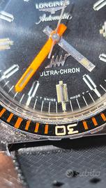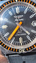 Come da titolo vendo Longines Ultrachron 7970-1 , l'orologio è stato prodotto tra la fine degli anni 60 e l'inizio degli anni 70, monta un calibro automatico 431 a 36000 alternanze, le condizioni generali sono davvero buone, quadrante e ghiera integri,corona originale,fondello con iconico simbolo in rilievo della Longines,il bracciale è originale Longines aftermarket . A parità di condizioni prezzo l'orologio in questione è pressoché introvabile . Non spedisco, preferibilmente ritiro a mano in zona Como/ limitrofi. Valuto eventualmente scambi con orologi di mio interesse Omega/Longines/Tudor/Rolex/Zenith