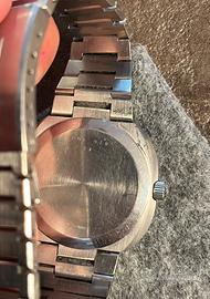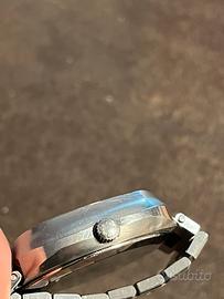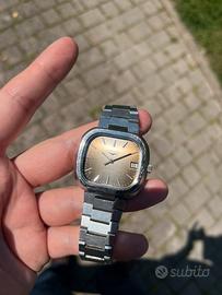 Cedo da collezione privata splendido Longines Ultronic degli anni ’70, modello dal grande fascino vintage con cassa cushion tipica dell’epoca e condizioni molto oneste. Quadrante grigio con magnifiche sfumature marroni / dorate che cambiano alla luce, davvero elegante e particolare dal vivo. Vetro appena sostituito presso centro autorizzato Longines. Cassa mai lucidata, conserva ancora la satinatura originale di fabbrica, dettaglio sempre più raro da trovare su questi esemplari. Movimento funzionante; per scrupolo consiglio una revisione, e attualmente la batteria è stata rimossa a titolo precauzionale. Bracciale originale completo di tutte le maglie, con fori di microregolazione sulla clasp per una vestibilità ottimale. Corona originale, così come l’intero orologio. Prezzo coerente con le condizioni generali: presenti piccoli segni del tempo e d’uso, visibili e normali per un esemplare con oltre 50 anni di storia. Disponibile a inviare ulteriori foto e video dettagliati a interessati seri. Oggetto sempre più ricercato, perfetto per collezionisti e appassionati di vintage Longines.